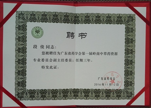 会议期间,岭南中草药资源专业委员会正式成立,华南植物园段俊研究员当选为委员会副主任委员。