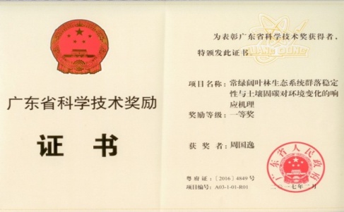 2月7日,中国科学院华南植物园生态系统生态学研究组首席科学家、鼎湖山森林生态系统定位研究站站长周国逸研究员带领的研究团队,继2006和2008年先后以“热带亚热带森林生态系统碳、氮、水耦合研究”和“华南热带亚热带森林生态系统恢复/演替过程碳、氮、水演变机理”成果获得广东省和国家自然科学奖的基础上,2016年度,继续以“常绿阔叶林生态系统群落稳定性与土壤固碳对环境变化的响应机理”成果获广东省科学技术一等奖,使该领域机理上的研究有了更新进展。