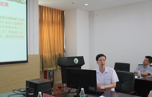 座谈会上,段子渊表示,此次根据院领导指示精神来华南植物园开展深入调研,目的是为促进我院所级植物园的改革发展,从业务角度梳理院属各植物园的发展现状,调研新时期植物园发展存在的问题、面临的机遇、具有的优势以及应对的挑战和措施,专家组将根据调研提出植物园的发展建议,为领导决策提供科学依据。任海代表华南植物园详细汇报了“一三五”规划布局,各方面进展情况,科研体制机制、人事、后勤改革,及对植物园发展规划的思考等内容。