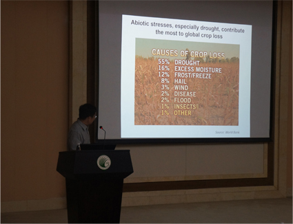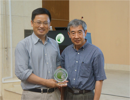 朱健康研究员为美国科学院院士,是国际植物抗逆分子生物学领域领军科学家,是世界植物科学领域发表论文引用率最高的科学家之一。报告会上,朱健康博士作了题为“Understanding and Improving Abiotic Stress Resistance In Plants”的学术报告,针对植物如何平衡生长与抗逆,植物对逆境的响应及信号传递等问题进行了详细阐述,同时提出了他对植物抗逆研究领域的深刻见解与思考。报告深入简出,大会气氛活跃,朱院士还与听众进行了互动交流。报告后,黄宏文研究员为朱健康博士颁发了纪念牌。