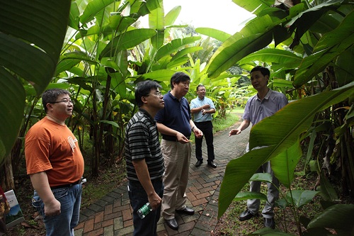 傅伯杰院士等参观了水生植物园、广州第一村暨地带性植被园、姜园、珍稀濒危植物植物园、苏铁园等园区,并在水榭会议室进行了学术交流活动。