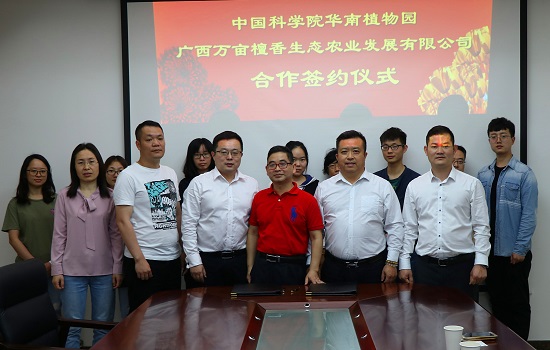 49日,广西万亩檀香生态农业发展有限公司一行4人莅临华南植物园就发展檀香产业和建设檀香温泉小镇项目合作进行了研讨并举行签约仪式;中科院华南植物园马国华研究员、张春华副研究员、科技促进发展中心崔博等同志热情接待了代表团一行。