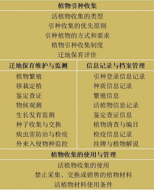 植物园是稀有濒危植物迁地保护最主要的场所,全球植物园保存了约30%的稀有濒危植物,我国植物园引种保存了我国约40%的濒危植物。但是植物园普遍存在种源信息和谱系记录不清、遗传混杂和盲目定植等问题。《植物迁地保育原理与实践》在迁地保育管理中应重视植物的遗传管理,避免迁地保育植物遗传多样性丧失、近交与杂交、遗传适应性变异、突变积累等遗传风险,保持稀有濒危植物种子和种苗的纯正性和适合度,保持物种适应环境变化的能力,注重遗传漂变、选择和有害突变累积,增强居群健康度。