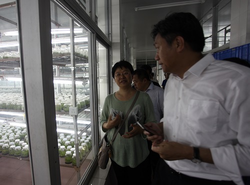 代表团一行先后调研了华南植物园展览温室群、种子组培室和保育温室群。调研中,任海详细介绍了近年来华南植物园在生物种质资源收集与保护方面的工作进展,以及对资源收集与保护的创新经验和做法;王瑛等科研人员分别介绍了甘草、枸杞、石斛、兰花等农业种质资源的收集选育及转基因研究、科技成果转移转化和产业化生产带动地方经济发展,并就相关问题提出了建议。