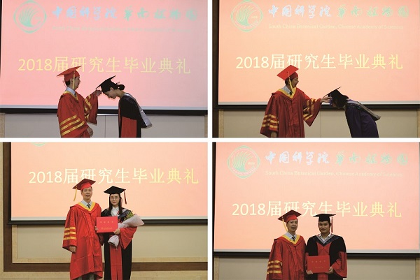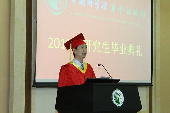 多年师生情,今昔离别心。艰辛科研路,望君砥砺行。满堂祝福语,只赠学子行。六月,是离别的日子,又一批华南植物园的莘莘学子即将离开这熟悉而美丽的地方,开启崭新的征程。6月15日,中国科学院华南植物园2018届研究生毕业典礼在一号实验楼第一会议室隆重举行。典礼前,到场的所有师生首先共同欣赏了毕业生精心制作的毕业纪念册,视频再现了同学们在华植学习生活的点点滴滴,记录了毕业生对母校、对学院、对老师的感恩与祝福。伴着《义勇军进行曲》庄严高亢的旋律,本次毕业典礼正式拉开了帷幕。毕业典礼由人事教育处赖志敏副处长主持,任海主任、张福生书记、蒋跃明副主任等园领导,部分园学位委员会委员、研究生导师,管理部门负责人,BIOMIGA和普邦园林公司代表,在读研究生代表以及2018届全体毕业生和部分毕业生的家人参加了典礼。