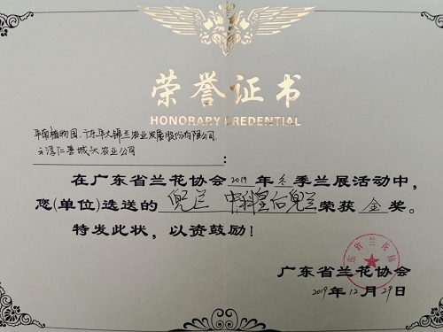 1月7日,由中科院华南植物园曾宋君研究团队和广东华大锦兰农业发展股份有限公司及云浮市云城区仁善城头农业发展有限公司合作选育的‘中科皇后兜兰’和‘中科紫斑兜兰’通过了广东省农作物品种审定委员会办公室组织的专家现场鉴定。同天,‘中科皇后兜兰’和‘中科紫斑兜兰’分别荣获广东省兰花协会组织的2019年冬季兰展的金奖和铜奖。