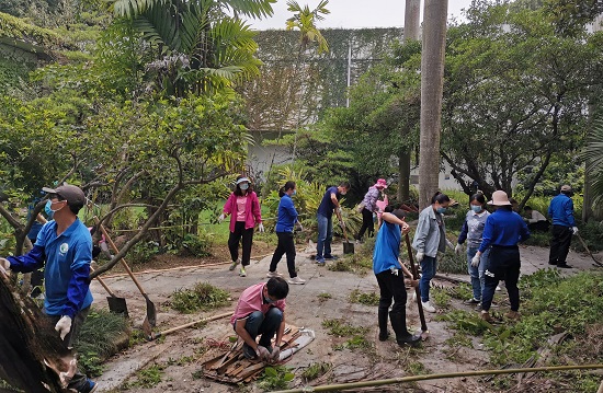 4月17日下午,中科院华南植物园园艺中心党支部党员在支部书记夏汉平带领下,以“防疫有我,爱卫同行”为题开展主题党日活动。支部34名党员参加了义务劳动。