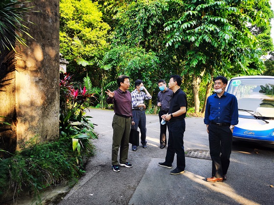 4月27日,广州分院分党组书记/副院长陈广浩,党群工作处处长郭震到华南植物园调研党员主题教育基地建设工作。园党委书记/副主任魏平、副书记/纪委书记徐海及党委办公室相关同志参加调研会,共同商讨华南植物园党员主题教育基地建设方案。
