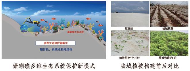 该项目面向南海生态岛礁建设的国家重大需求,针对岛礁珊瑚礁生态保护技术单一、种源匮乏和持续性差的国际难题,明确保护必需的框架结构,确定30种关键功能生物;突破22种关键功能生物繁育及底播技术,实现了生态保护种苗自给;发明基底稳固和礁基生物膜化技术,提高幼体变态附着率10倍以上;首创珊瑚礁“物种多维、生境多维、结构多维、技术多维”系统性保护新模式,研发功能菌剂、病敌害防控等养护技术,建成了世界最大珊瑚礁生态保护示范区。针对南海岛礁极端环境下的植被构建难题,研发了基质改良技术、50多种植被构建工具种和果蔬规模化繁育、养护及群落构建技术,形成岛礁绿化系统解决方案,建成示范区12万平方米,有力支撑了南海岛礁生态安全与可持续发展。该研究团队获中共中央、国务院等授予的“模范集体”称号。