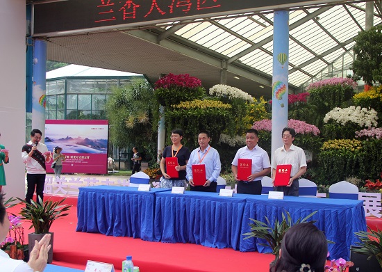 开幕式上,李欣、闫俊华等领导分别致辞。闫俊华致辞介绍了华南植物园的历史和基本情况以及与兰花的渊源。他表示,近年来华南植物园与韶关市人民政府合作领域不断扩大,如共建南岭国家森林公园、合作开展大农业开发,拟开展的桉林改造与金属尾矿的修复等,院地合作积极推动着地方的发展。希望此次韶关兰花走进华南植物园,再从这个热带亚热带植物博物馆走进大湾区,从旅游景点走进千千万万的消费者家中。随后,韶关农业农村局与华南植物园签订了“三农”技术服务战备合作协议,并共同启动“兰香大湾区”万人游活动。