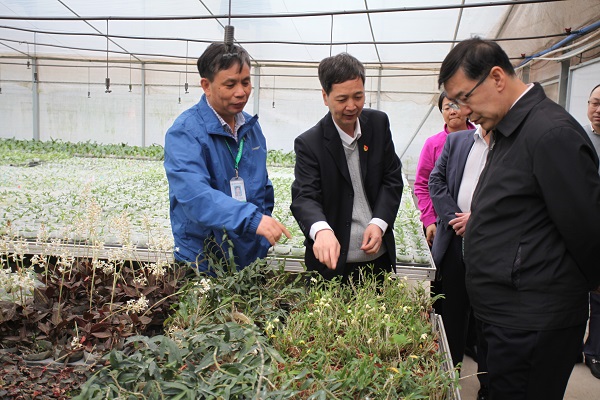 阴和俊首先参观了华南植物园的园林景观布局、植物配置及养护、科普设施投入等建设运营情况,园主任任海重点介绍了华南植物园近年来在迁地保护国家重点保护植物、经济植物利用、植物科学及生态科学普及方面的重要进展。在科研区,公共实验室主任徐信兰正高级工程师向阴和俊介绍了实验室发展历史、规模及其为园内外科研工作服务等情况;植物代谢组学实验室负责人杨子银研究员介绍了茶叶品质安全与调控方面的研究进展。在热带珊瑚岛植被建设盆栽苗群落展示区,任海主任介绍了珊瑚岛适生植物选育以及生态建设情况;在珍稀植物繁育实验基地,曾宋君研究员介绍了兜兰、朱顶红以及石斛新品种培育情况。阴和俊一边听取介绍,一边和科研人员亲切交谈,了解一线实际情况。