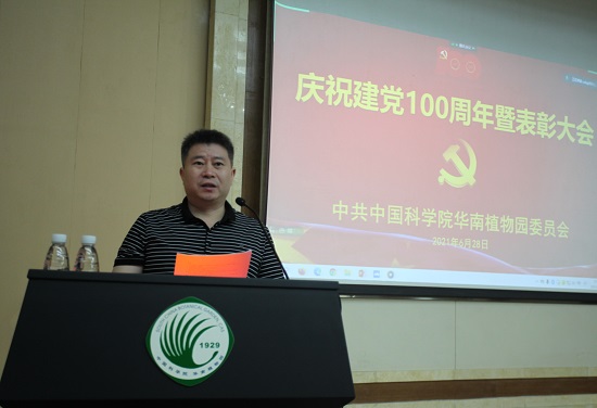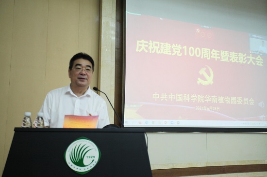 628日,华南植物园通过视频会议方式召开庆祝建党100周年暨表彰大会,园党政领导班子成员、纪委委员,离任的党委、纪委委员,获表彰的先进集体代表和个人,新党员代表出席主会场会议。在主会场及12个分会场参加会议的党员共370余人。党委副书记/纪委书记徐海主持会议。