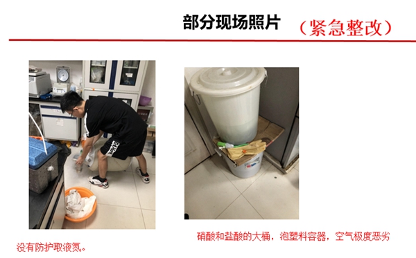 讲座中,关教授首先肯定了我园实验室的安全管理工作,认为我园的实验室环境及条件处于中科院中等水平。检查中发现有机试剂过量堆积、液相色谱仪器未配备万向罩、塑料桶装高度硫酸浸泡容器等严重的安全隐患,必须在“十一”前完成整改。此外还有存在其他的安全漏洞,包括氮气瓶堆放门口(容易被绊倒引发危险,应放置于实验室内部区域)、部分气瓶未进行固定、危化品试剂未放入专用柜(且应实行双人双锁)、废液未经处理直接倾倒、无防护取用液氮、使用挥发性有毒试剂未正确使用通风设备等问题。实验室内工作人员普遍存在不穿工作服不戴手套不戴护目镜的现象。同时,关教授也表扬了做得优秀规范的实验室,分别是位于一号楼4层的植物激素调控组实验室、三号楼1层的公共实验室,认为他们的实验室达到部属级别。建议大家以他们为楷模,向他们看齐。
