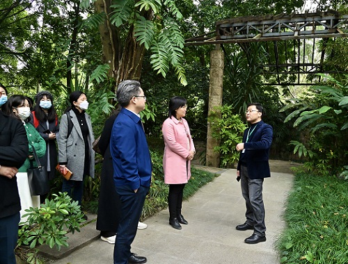 华南植物园主任任海首先为参会代表简要介绍了植物园悠久的历史、定位与使命,同时我园作为“国家队”聚焦主责主业所取得的科研成果,随后带大家参观了我园第一个专类园棕榈园及世界级经典园林景点龙洞琪林,由此引申出我园在园林景观与植物资源开发利用上对国家、地方经济所作出的贡献。任海还接受了广州电视台的专访,推介了我园虎年寻“虎”迹植物展等新春三大主题活动。