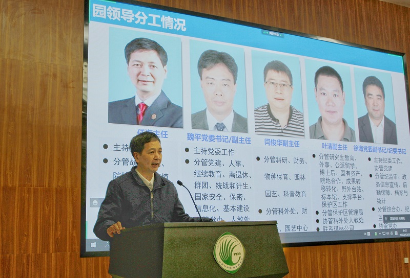 华南植物园任海主任代表园领导班子,以《初心如磐践使命 奋楫笃行启新程》为题作年度工作总结,从2022年重点工作进展、存在突出问题及2023年重点工作计划三个方面进行了工作汇报。