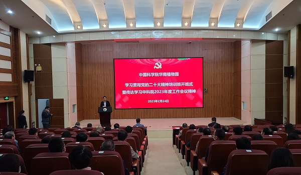 2月24日上午,中科院华南植物园隆重召开学习贯彻党的二十大精神培训班开班式暨2023年度工作会议。园领导班子成员,党委委员,纪委委员,党支部书记,学术委员会委员,职代会代表,中层领导人员及研究中心、支撑部门负责人,以及民主党派、群团组织负责人,离退休老同志和研究生代表等130余人参加。会议由园副主任闫俊华主持。