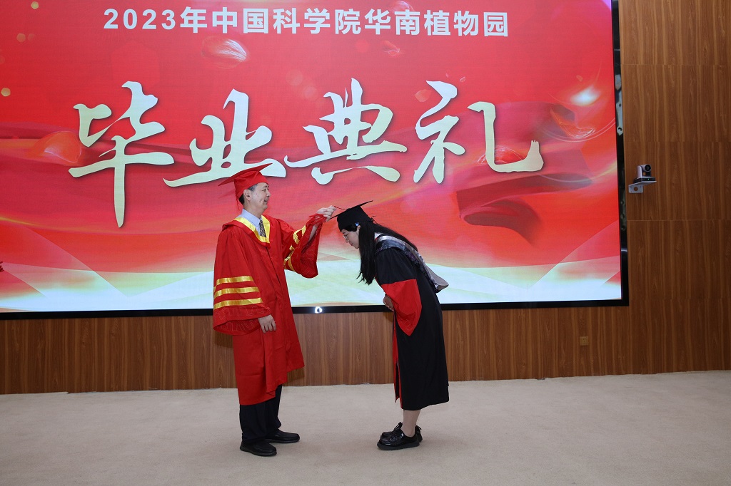 6月20日下午,中国科学院华南植物园2023届研究生毕业典礼在一号实验楼第一会议室隆重举行。今年共有138名研究生毕业,其中博士45名,硕士93名,包括4名留学生。园主任任海,副主任叶清,党委副书记、纪委书记徐海,部分学位委员会委员,研究生导师代表,管理部门负责人,毕业生及亲友代表等参加。典礼由叶清主持。