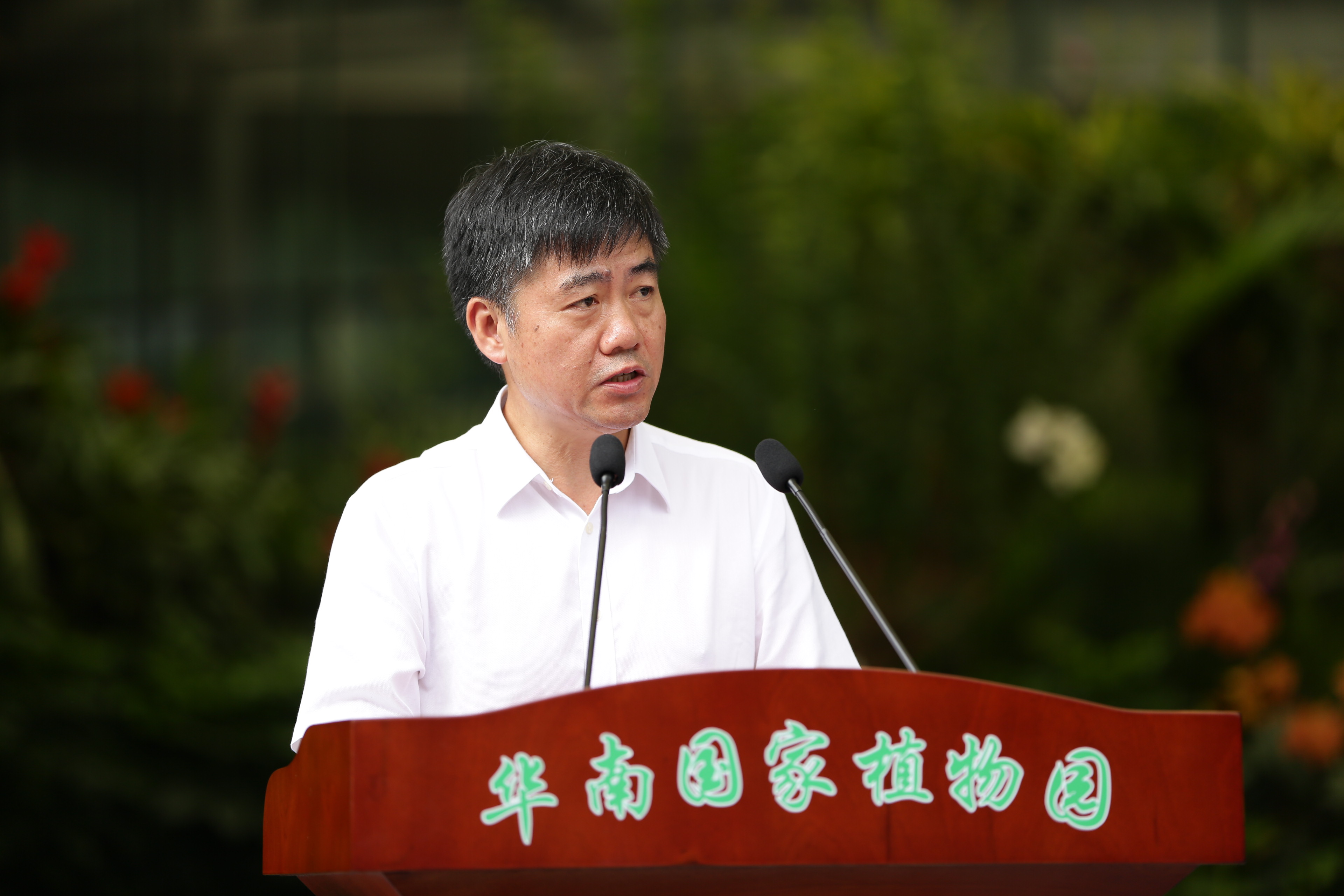 活动仪式上,华南植物园主任任海介绍了华南国家植物园设立以来的工作进展,并对下一步工作提出了建议。任海提到,华南国家植物园现阶段的重要工作是依托华南国家植物园,拓展植物园迁地保护、科研科普社会服务功能,坚持空间拓展、差异发展、优势互补原则,构建国内首个城园融合体系。