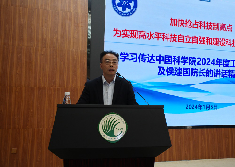 园主任任海对贯彻落实中国科学院2024年度工作会议精神作了部署。他提出四点工作要求。一是要进一步提高政治站位,认真贯彻落实习近平总书记重要批示精神,聚焦国家战略需求和世界科技前沿,切实履行好国家战略科技力量的职责使命。二是各研究中心要尽快组织研讨,结合“十四五”规划,按“3+5”年发展战略制订抢占科技制高点工作方案。三是各党支部、管理和支撑部门要进一步优化管理体系,提升管理能力和治理效能,将人才队伍和各方面资源整合聚集到核心任务上。四是统筹好建平台、争项目和出人才的关系,扎实做好华南国家植物园建设、国重重组、谋划专项并争取国家任务。