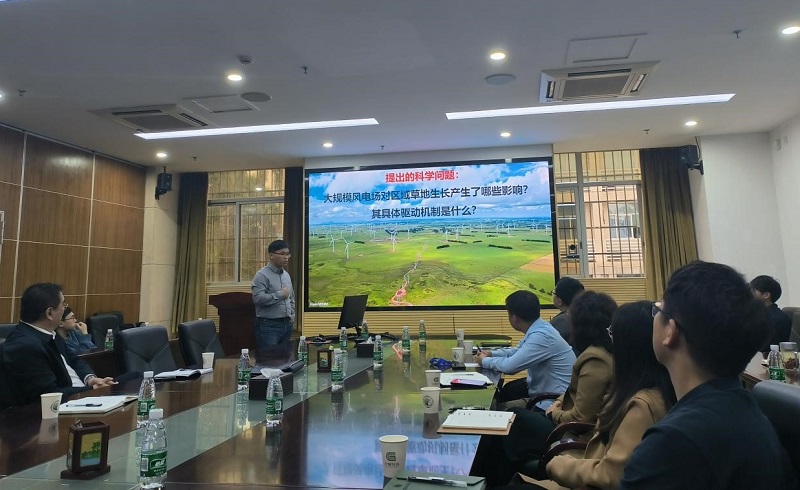 第三位报告人是我园新引进的海归人才武东海研究员。武博士的报告展示了优秀海归青年科学家的风采,他以研究风电场对植被生长的影响为例,讲述科学研究的基本逻辑。结合自己的研究经历,从如何发现并提出一个科学问题,到对如何对提出的科学问题进行深入探索,再到如何解决科学问题并讲出一个好故事进行了系统的阐述。随后对在全球风能产业快速发展过程中,如何从科学的角度去探究其对生态系统功能的负面影响,进而进一步推动可再生能源的发展进行了深入的探讨。最后,作为新成立的课题组,武博士向大家介绍了自己未来的研究方向将如何与国家重大需求相结合,随后与现场听众进行了深入交流和讨论。