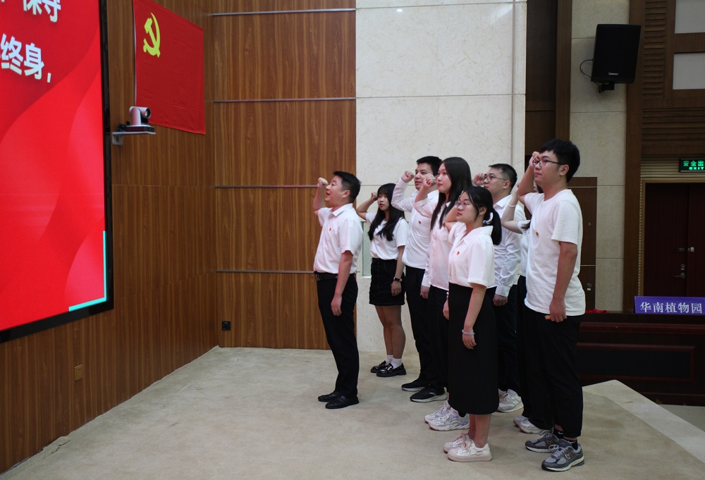 大会在庄严的《中华人民共和国国歌》声中拉开帷幕。在鲜红的党旗下,党委委员杨子银带领新党员向党旗庄严宣誓。会议表彰了荣获省直机关“四强”党支部的生态中心第二党支部,颁发了“光荣在党50年”纪念章。新党员代表张玲玲在发言中表示,成为一名正式的中共党员是成长的新起点,承诺要把入党誓词作为终生追求、终生修养和终生实践。生态中心第二党支部书记刘占锋表示,荣获“四强党支部”既是鞭策,也是新动力,将带领党支部全体党员不忘初心,牢记使命,加强党建引领,持续推进党建和科研业务深度融合,为落实抢占科技制高点目标任务、推进高水平华南国家植物园建设贡献智慧力量。