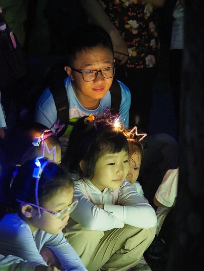 萤火虫,人称“会呼吸的钻石”,对生活环境质量的要求比较高,是环境指示生物。由于人类的过度开发和干扰,适合萤火虫生存的环境越来越少,人们也越来越难以见到这可爱的夏夜精灵。位于城郊的华南植物园,拥有4000多亩的园林和丰富的生物多样性,堪称人间的伊甸园,也为对环境质量要求很高的萤火虫提供了生活的家园。每当进入高温多湿的夏季,华南植物园就会迎来流萤飞舞的夜晚。为了让人们能欣赏到这美丽又浪漫的点点萤光,华南植物园每年在萤火虫季开设萤火虫及生态夜观课,通过科普讲座、图文展示、或导赏讲解、实物观察、现场沉浸式体验等教学方法,普及萤火虫、夜行性小动物和相关植物知识,增加人们对我们生活的环境、以及与我们共同生活在地球家园里的其他生物伙伴、尤其白天难得一见的夜间精灵的了解,发现它们精彩的生活和生命故事,从而喜欢上自然里的生命并尊重它们、爱护它们,排除对黑夜的恐惧,也锻炼了人们的观察力、培养了自然探索力和耐心;倡导尊重生命、万物平等、共生共荣理念,从而引导人们在日常生活中逐渐形成热爱自然、保护环境的良好行为习惯。