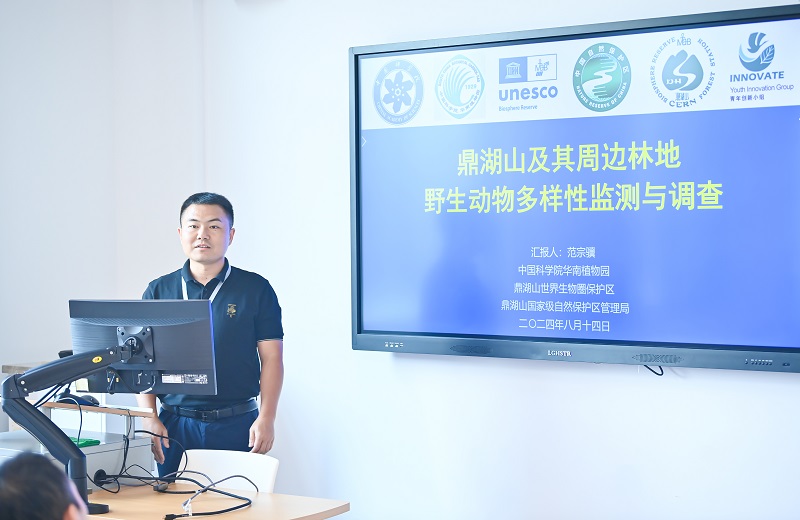 会议期间,六位知名专家进行了主旨演讲,并设有涵盖多个领域的14个专题讨论及墙报交流。范宗骥作为MAB青年创新小组成员受邀召集并联合主持了“专题12:保护技术在自然保护地科研监测中的应用”,同时分享了题为“鼎湖山及其周边林地野生动物多样性监测与调查”的报告,报告概述了鼎湖山保护区基本情况,详细介绍了鼎湖山及其周边林地近几年野生动物多样性监测与调查的实践应用、研究进展及其成果等,同时在“天空地一体化”综合监测体系方面提出了新的构想,通过进一步加强生物多样性监测与保护工作,为华南地区乃至全国的自然保护事业树立典范。