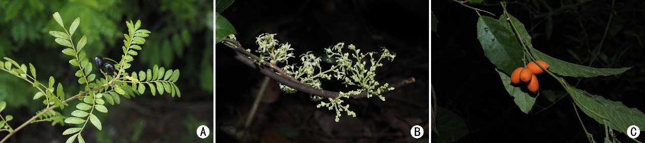 图3. A:小叶九里香;B:栗豆藤;C:刺核藤