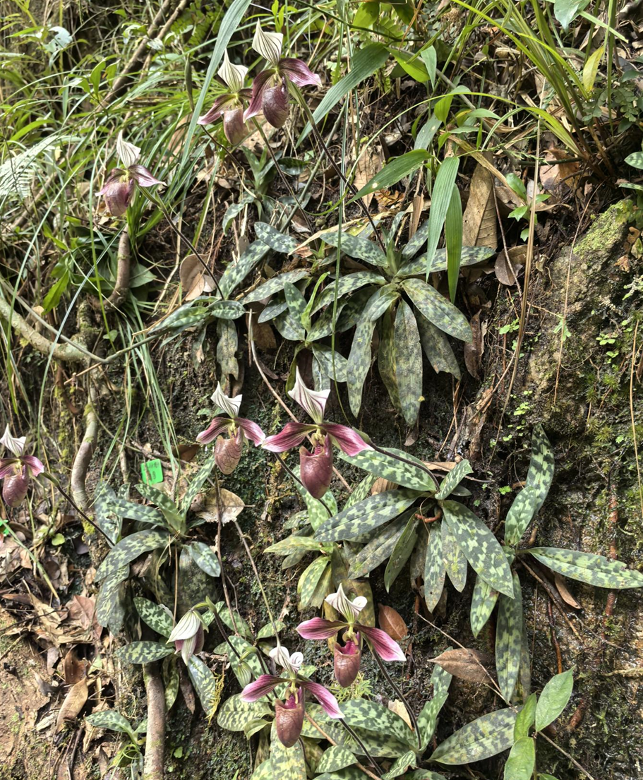 会后,参会代表在广东紫金白溪保护区开展了紫纹兜兰的野外回归活动。共同将75株来源于该保护区人工授粉并经过华南植物园繁育成功的种苗被种植在保护区自然环境中,还有500株繁殖的种苗被移植到保育温室中养护以供后续自然回归。